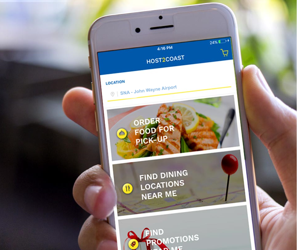 Travelers heading to John Wayne Airport can now easily preorder a meal or snack from select locations throughout the Terminal. Orders can be placed through the free mobile app “Host2Coast”, paid for and scheduled for pick-up up to 4 hours in advance of arrival at the Airport.