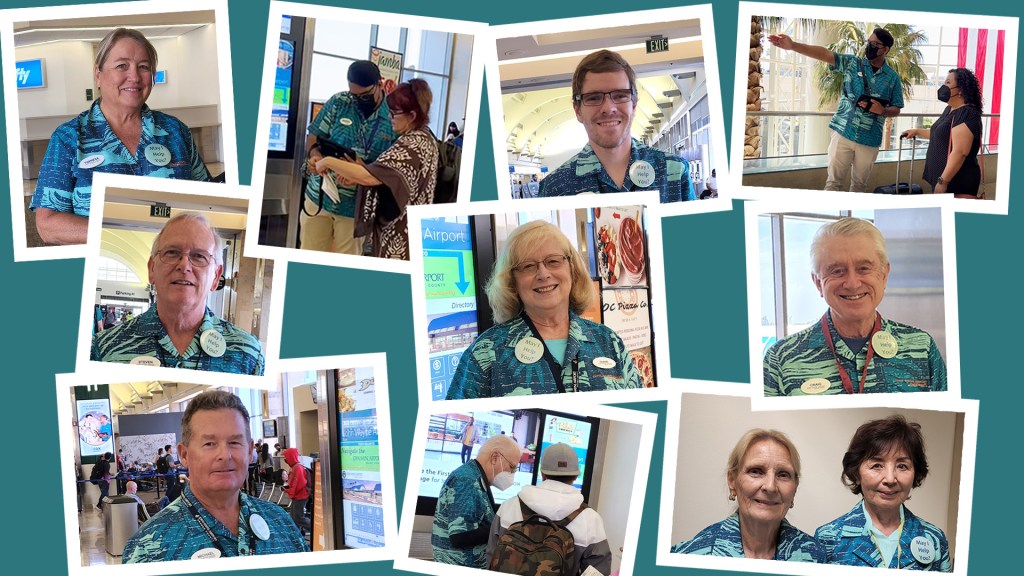 As a nod to the So Cal Beach aesthetic and the location of the Airport in sunny Orange County, CA, Ambassadors are easy to identify in their teal, coastal-themed collared shirts.