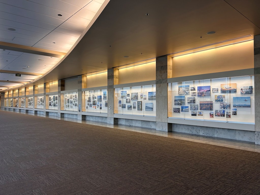 To commemorate this centennial feat, John Wayne Airport celebrated at the Terminal with a Press Event on September 28, 2023. The event featured the unveiling of an art exhibit showcasing the rich history of aviation in Orange County. This historical display stretches along the pre-security Departure (upper) Level walkway Gallery between Terminals B and C.
