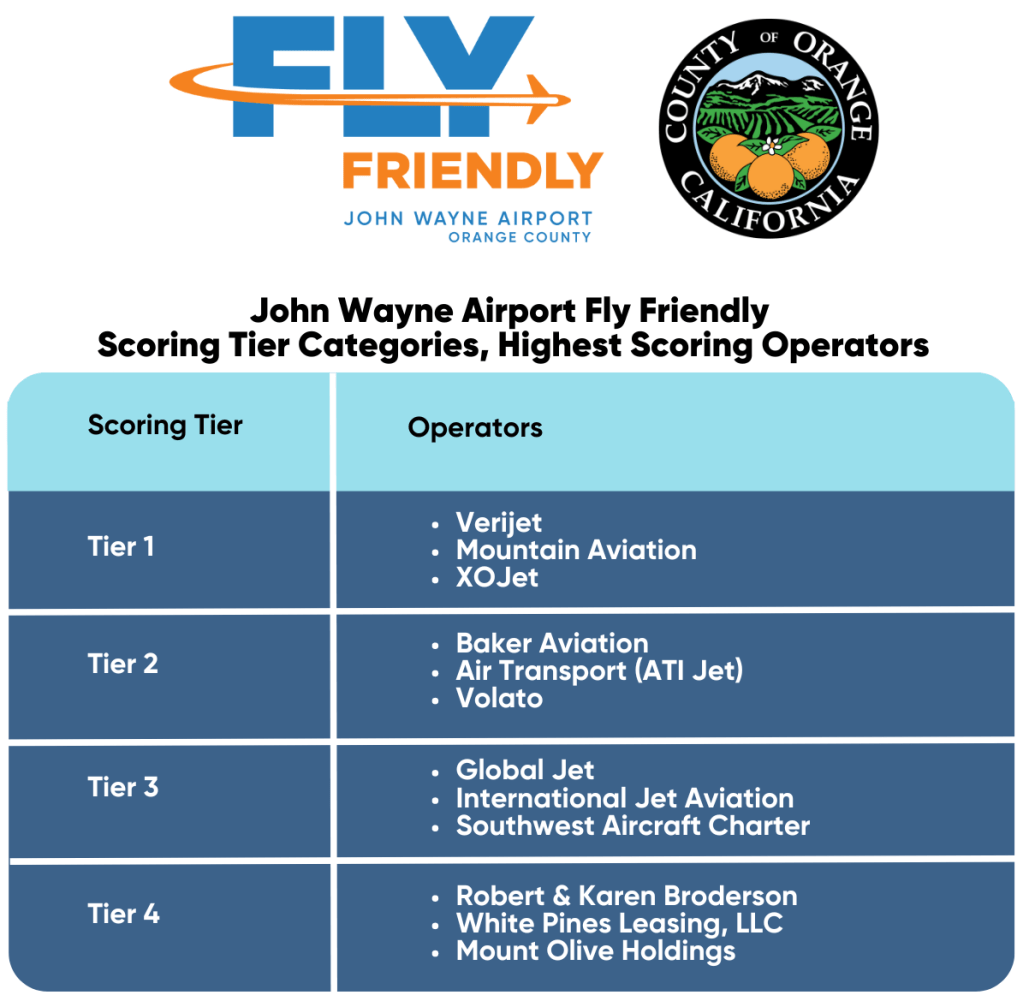 John Wayne Airport recognized the outstanding contributions of General Aviation (GA) jet operators in the 2023 Fly Friendly Program year. The program, which aims to reduce noise and encourage sustainable aviation practices, marks its second year of promoting community-friendly operations.