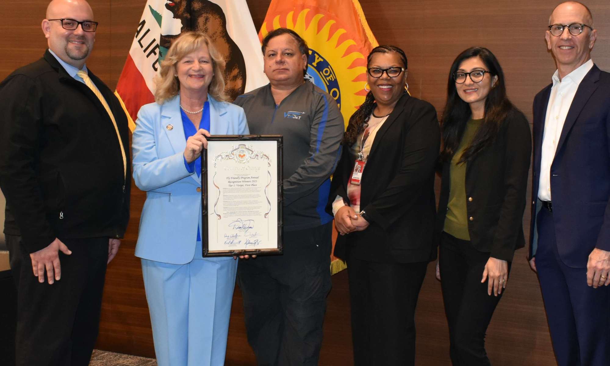 Supervisor Foley presents Fly Friendly recipient with County Proclamation John Wayne Airport recognized the outstanding contributions of General Aviation (GA) jet operators in the 2023 Fly Friendly Program year. The program, which aims to reduce noise and encourage sustainable aviation practices, marks its second year of promoting community-friendly operations. The 2023 Fly Friendly recognition recipients …